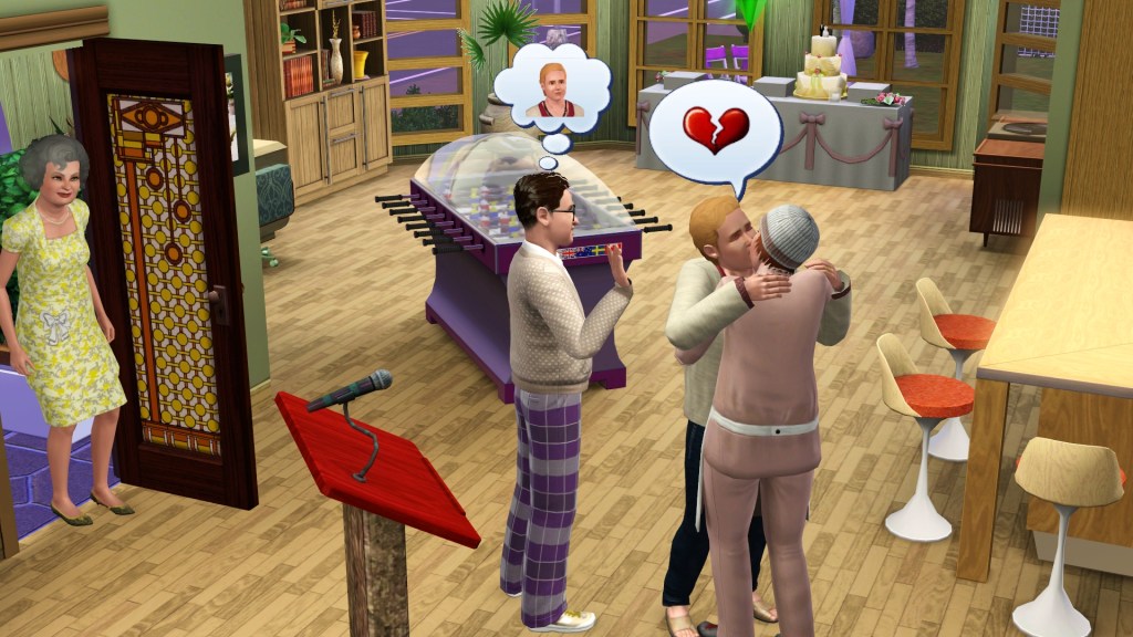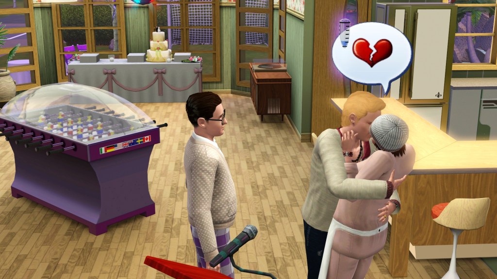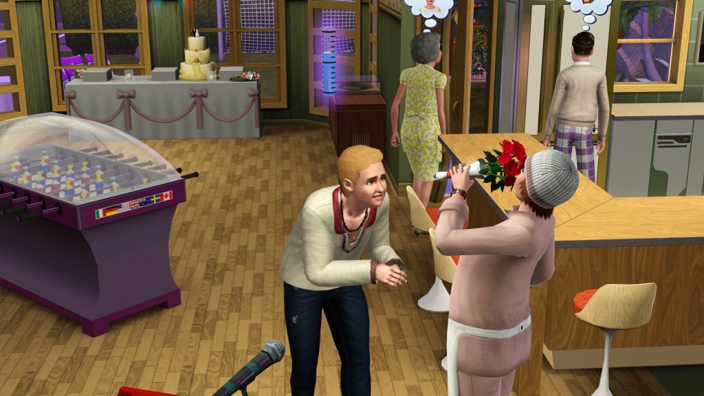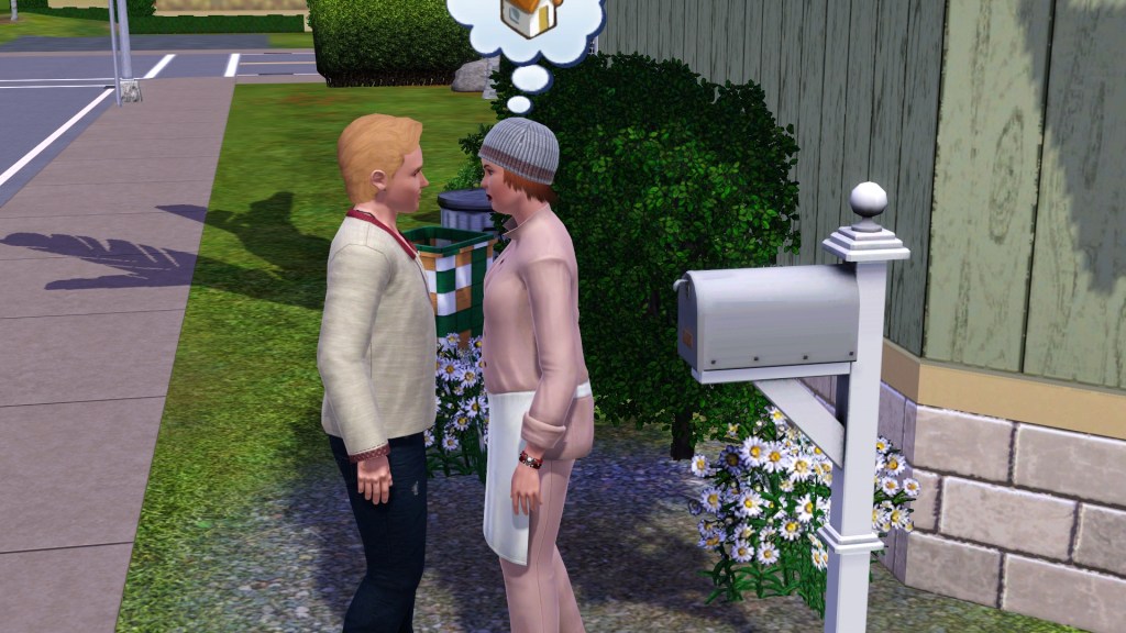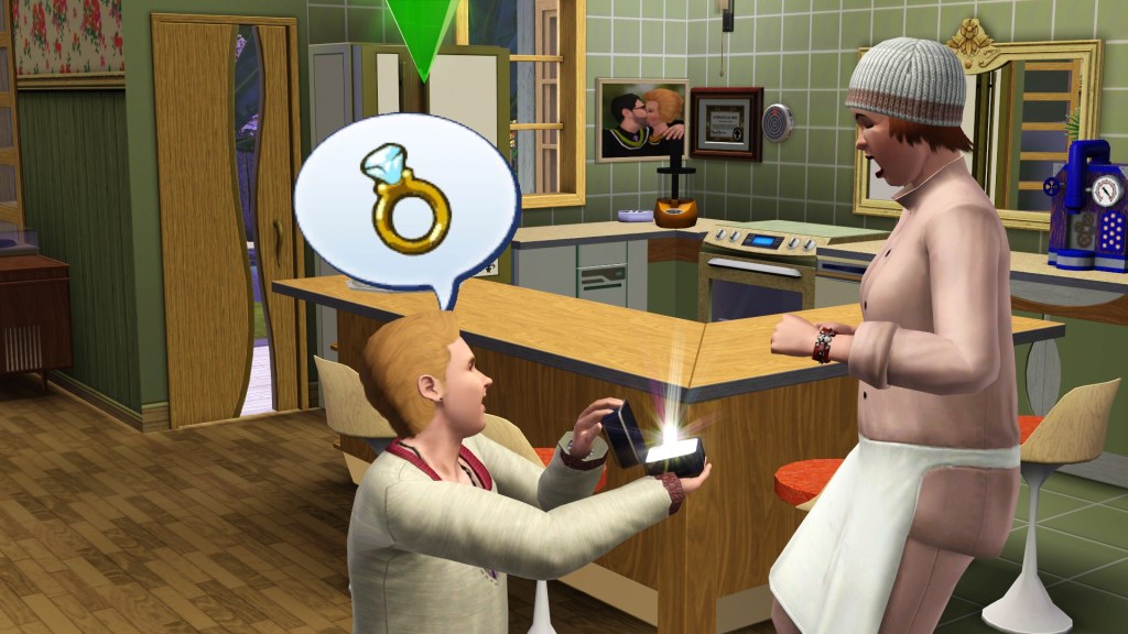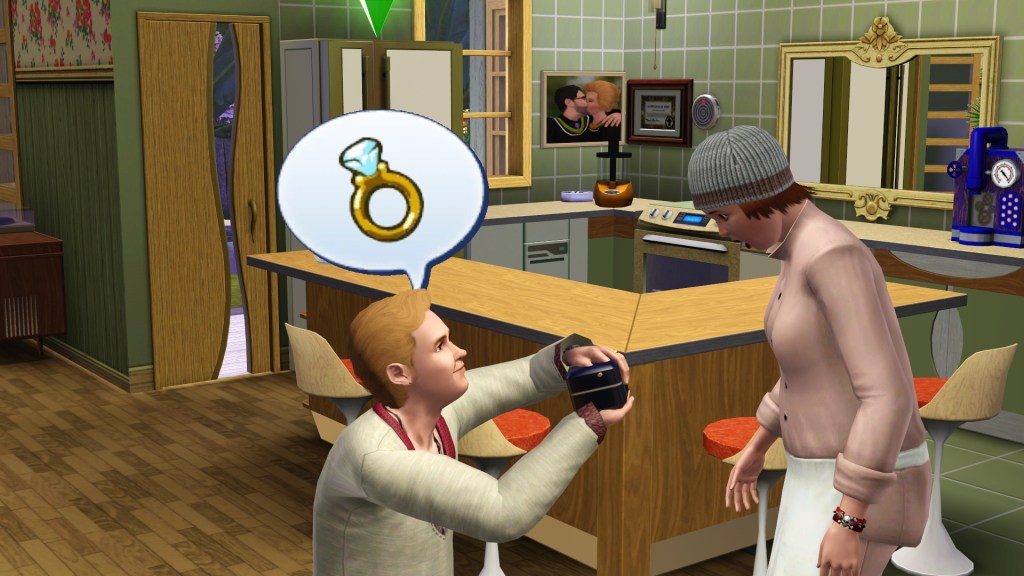 I don’t know how sensitive Emma Hatch is to making new friends and having relationships, and so Homer tried to use the standard warm-up or build-up actions before popping the question. In older Sims games this had to be preceded by some needs fulfillment, mainly hunger and fun. Homer had a Family-Oriented trait to help him.