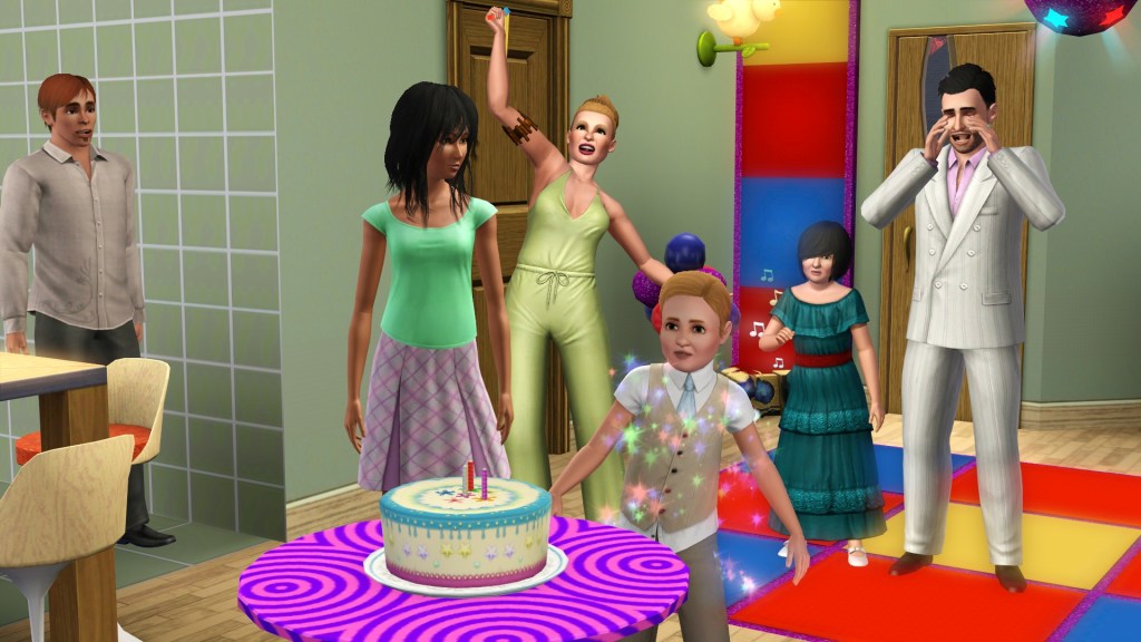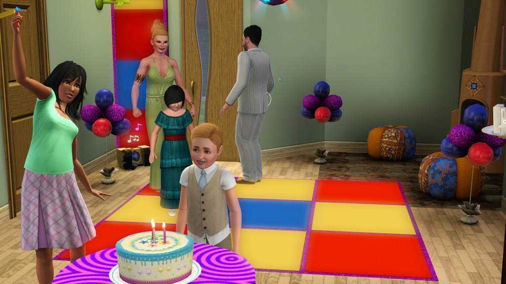 With his after-school activity concluded by the recital, and the arrival of his new sister, it seemed a good time for Homer to grow up into a Teen. Helen and Dardanus set up a disco and bought a cake. They used the phone to throw a birthday party, and danced to the little stereo while they waited.