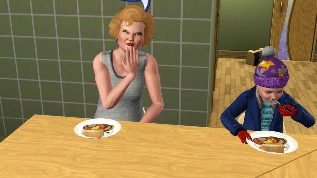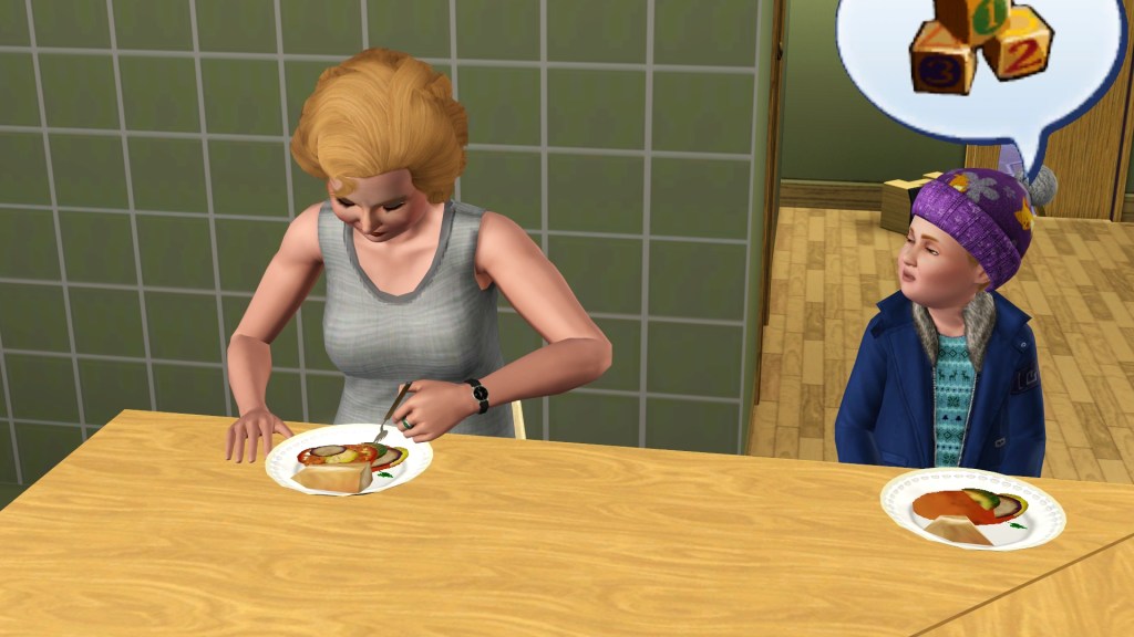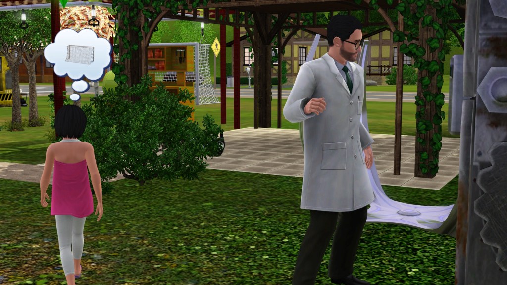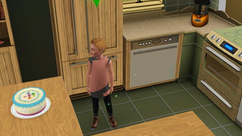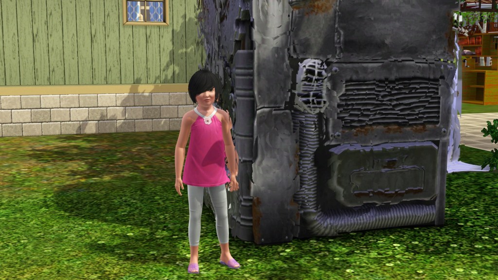 Dardanus built a time machine because with all of the Inventing he rolled a wish to do so, and to travel either into the future or past. I thought it would be harmless like the Miner, but this little child sim appeared, genetically Dardanus’ but not Helen’s.