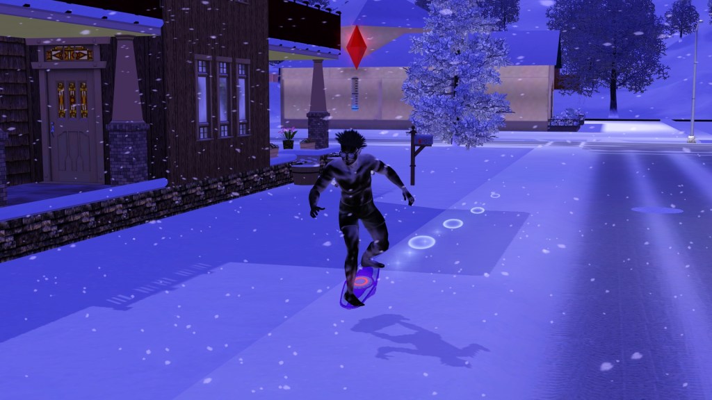 He hopped on his hoverboard and hurried on home. He was trying to build that skill so he can get around faster if they go on a World Adventure. He passed the Bachelor household on his way, and wondered if any of them would end up with his family, even though their name suggests a lack of commitment. Jocasta and Simis have stayed together.