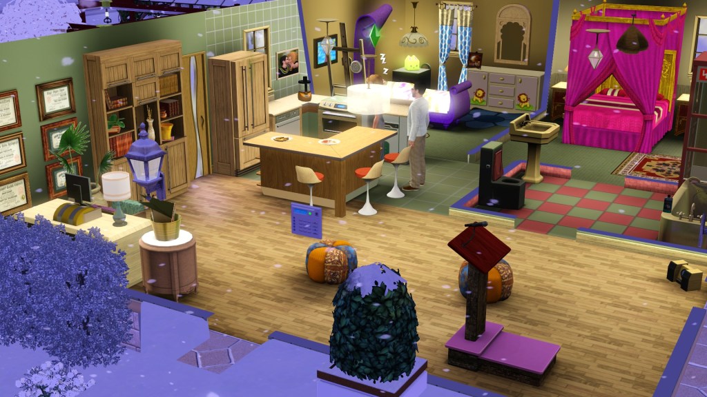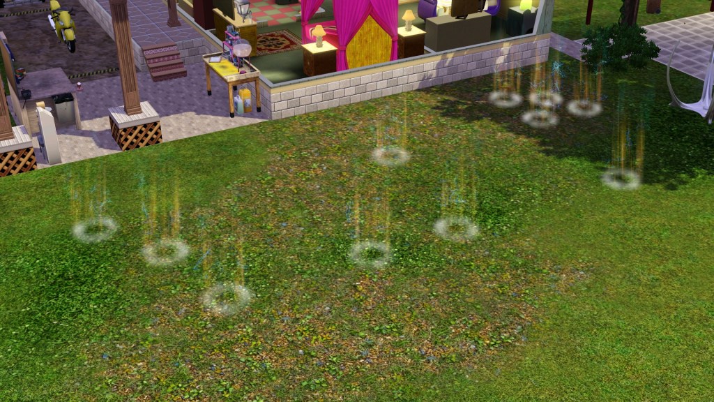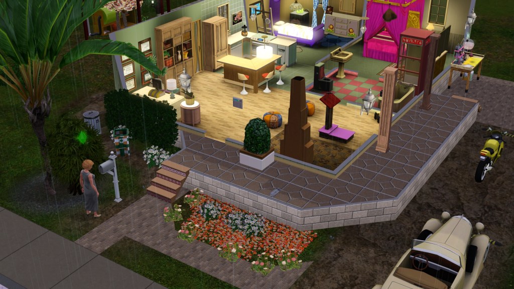 The Haute Hacienda Dining Room-Artful Adobe Fireplace which was soon replaced by the Jubillee because when they got around to needing the ‘Warm Self’ interaction, that option was missing. I figured from that that ‘Warm Self’ possibly came with higher-end fireplaces but an internet search didn’t seem to confirm that. Buying and then interacting with the Jubillee did bring up ‘Warm Self’ and they could afford it, so that’s what they ended up with. Although it took up more room.