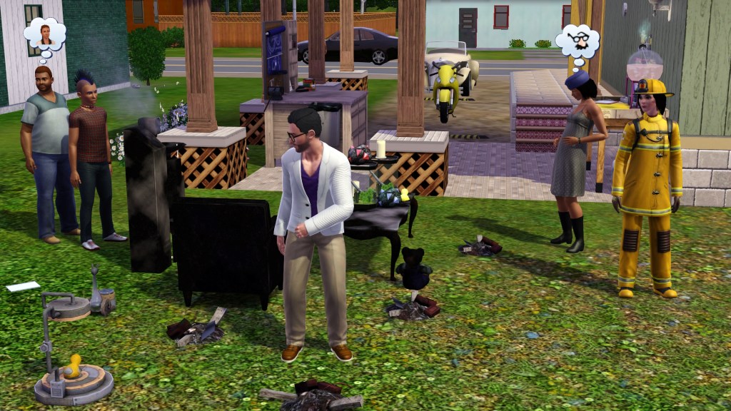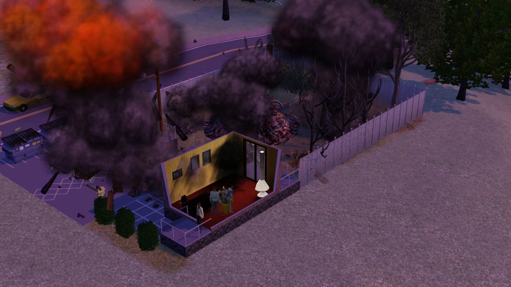 The babysitter was dismissed as they arrived home, where everything including Homer were where they had left it. They had taken all the other furniture with them in their family inventory to use at their university house seeings as Homer and the babysitter would be frozen in time and not in any need of anything. They didn’t take the toilet because they had already gained the Steel Bladder happiness reward and didn’t need it.