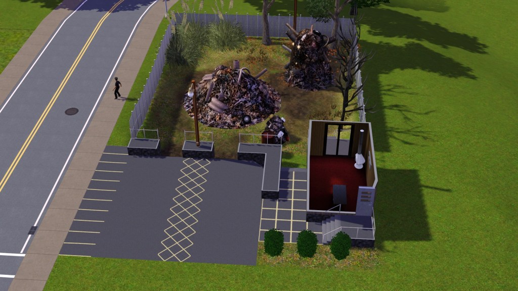 The salvageable items included all of the dumpsters, the lamp posts, the office’s furniture and the cars parked in the carpark. Dardanus tried hiding it all in his yard.