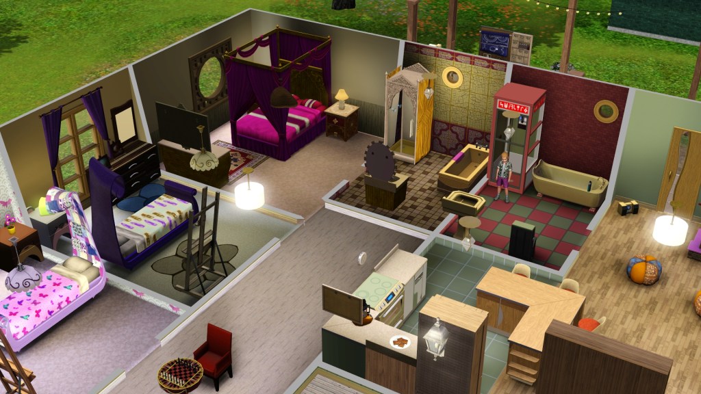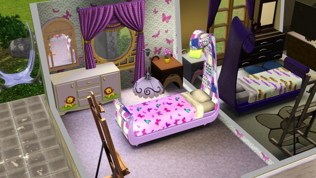 Her bedroom has the same dimensions and furniture as Homer’s, except girly. Her favourite colour is purple like Dardanus. Homer’s is actually hot pink but it was confused for purple, and Dardanus’ was originally confused for hot pink, why the parents’ bed is hot pink. The two confused colours have been continued. They haven’t seemed to care.